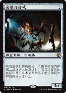 Rules Whenever Scrap Trawler or another artifact you control is put into a graveyard from the battlefield, return to your hand target artifact card in your graveyard with lesser mana value.