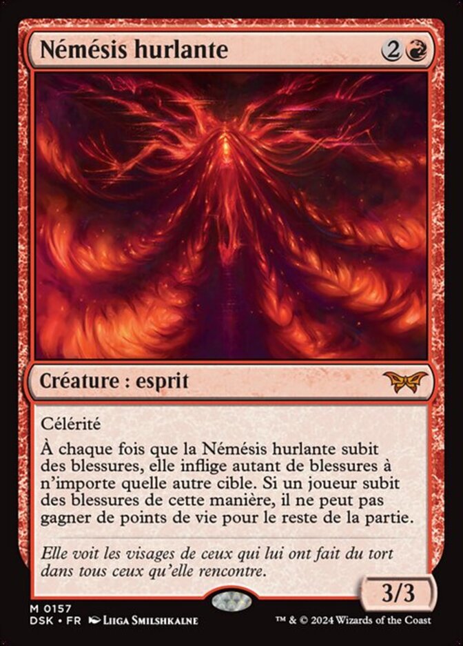 | Rules | Haste Whenever Screaming Nemesis is dealt damage, it deals that much damage to any other target. If a player is dealt damage this way, they can't gain life for the rest of the game. |