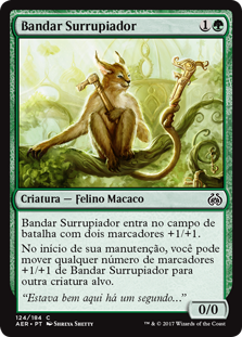 | Rules | Scrounging Bandar enters the battlefield with two +1/+1 counters on it. At the beginning of your upkeep, you may move any number of +1/+1 counters from Scrounging Bandar onto another target creature. |