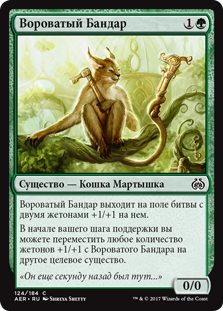 | Rules | Scrounging Bandar enters the battlefield with two +1/+1 counters on it. At the beginning of your upkeep, you may move any number of +1/+1 counters from Scrounging Bandar onto another target creature. |