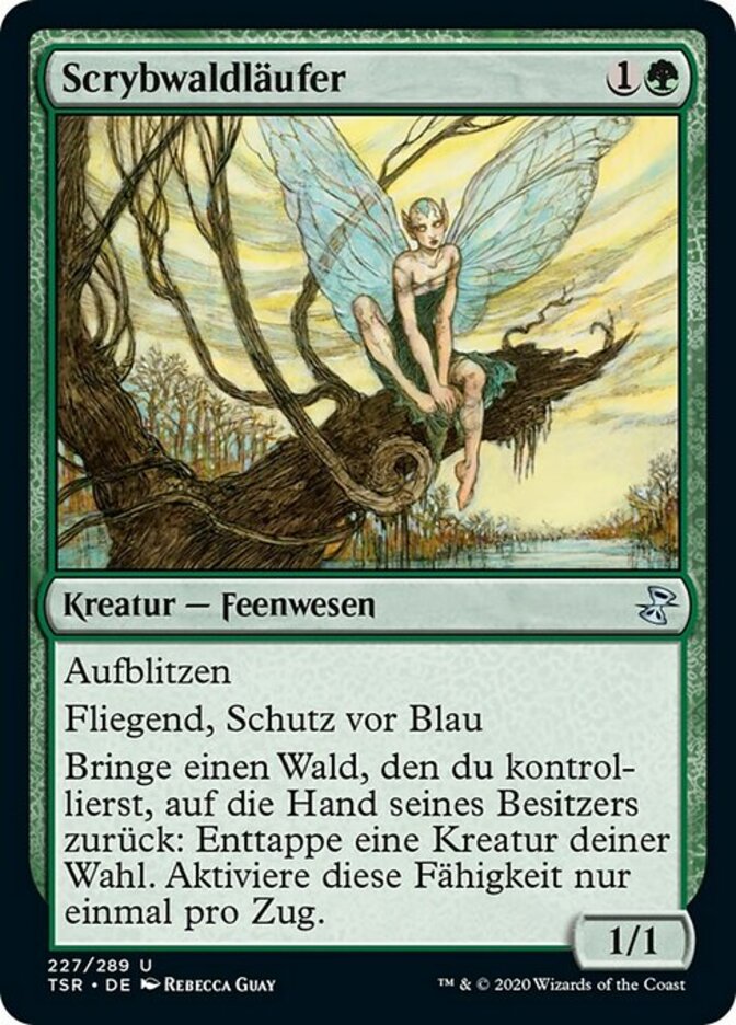 | Rules | Flash Flying, protection from blue Return a Forest you control to its owner's hand: Untap target creature. Activate only once each turn. |