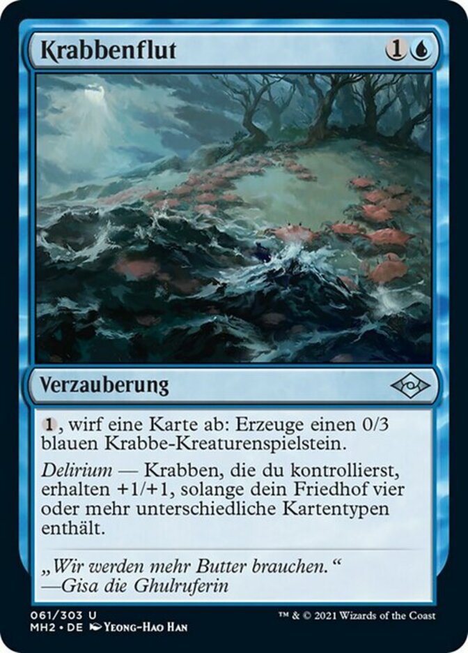 Rules , Discard a card: Create a 0/3 blue Crab creature token.