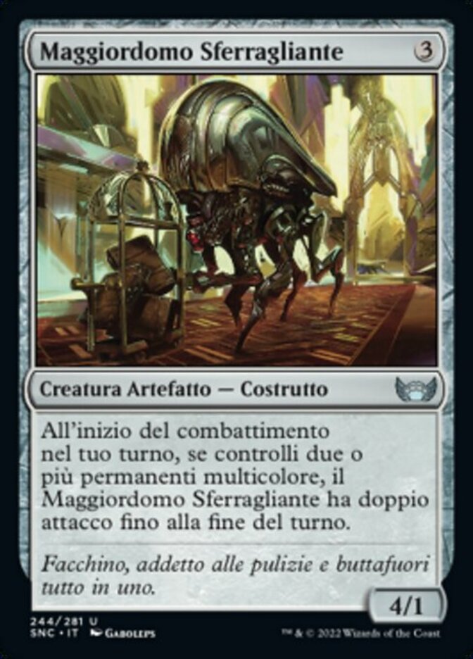 | Rules | At the beginning of combat on your turn, if you control two or more multicolored permanents, Scuttling Butler gains double strike until end of turn. |