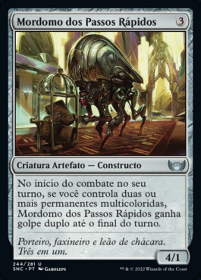| Rules | At the beginning of combat on your turn, if you control two or more multicolored permanents, Scuttling Butler gains double strike until end of turn. |
