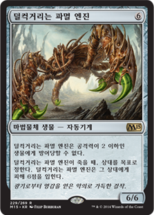 | Rules | Scuttling Doom Engine can't be blocked by creatures with power 2 or less. When Scuttling Doom Engine dies, it deals 6 damage to target opponent or planeswalker. |