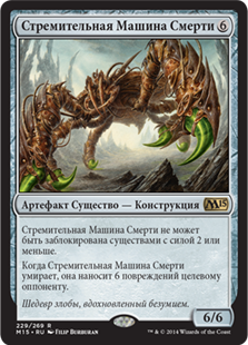 | Rules | Scuttling Doom Engine can't be blocked by creatures with power 2 or less. When Scuttling Doom Engine dies, it deals 6 damage to target opponent or planeswalker. |