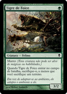 | Rules | Shroud (This creature can't be the target of spells or abilities.) When Scythe Tiger enters the battlefield, sacrifice it unless you sacrifice a land. |
