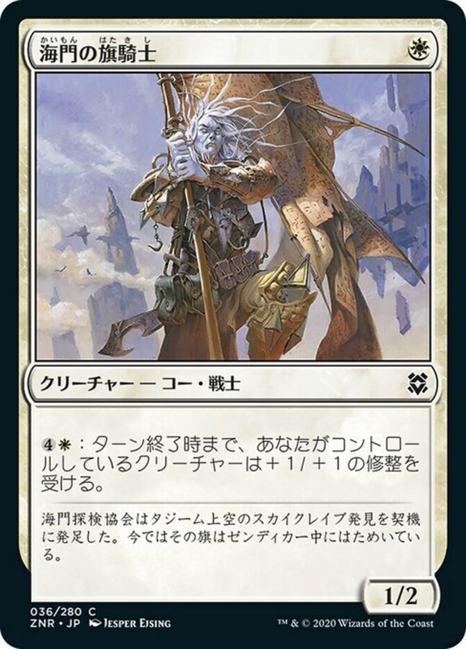 | Flavor | The Sea Gate Expeditionary House was founded after the discovery of the Skyclave over Tazeem. Now its banners fly over every corner of Zendikar. |