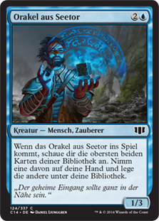 | Rules | When Sea Gate Oracle enters the battlefield, look at the top two cards of your library. Put one of them into your hand and the other on the bottom of your library. |