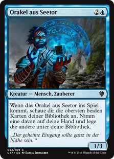 | Rules | When Sea Gate Oracle enters the battlefield, look at the top two cards of your library. Put one of them into your hand and the other on the bottom of your library. |