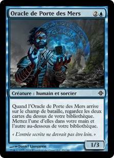 | Rules | When Sea Gate Oracle enters the battlefield, look at the top two cards of your library. Put one of them into your hand and the other on the bottom of your library. |