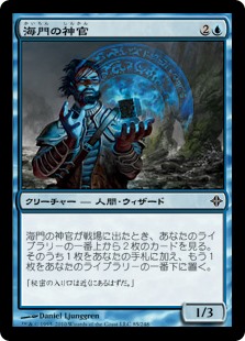 | Rules | When Sea Gate Oracle enters the battlefield, look at the top two cards of your library. Put one of them into your hand and the other on the bottom of your library. |