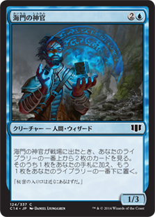 | Rules | When Sea Gate Oracle enters the battlefield, look at the top two cards of your library. Put one of them into your hand and the other on the bottom of your library. |