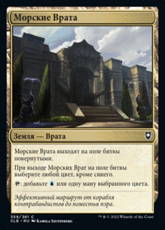 | Rules | Sea Gate enters the battlefield tapped. As Sea Gate enters the battlefield, choose a color other than blue. : Add or one mana of the chosen color. |