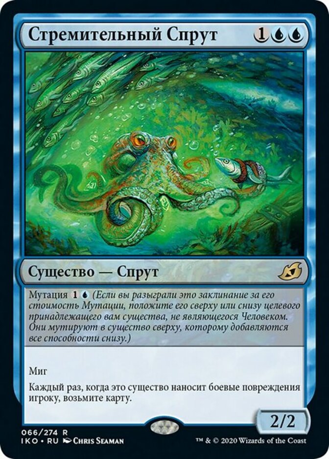 | Rules | Mutate (If you cast this spell for its mutate cost, put it over or under target non-Human creature you own. They mutate into the creature on top plus all abilities from under it.) Flash Whenever this creature deals combat damage to a player, draw a card. |