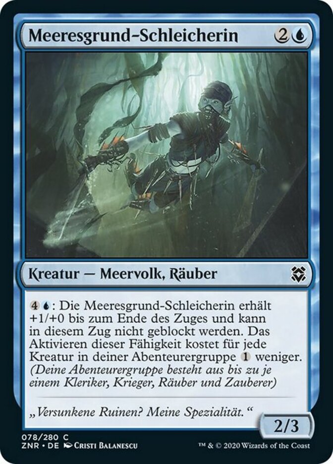 | Rules | : Seafloor Stalker gets +1/+0 until end of turn and can't be blocked this turn. This ability costs less to activate for each creature in your party. (Your party consists of up to one each of Cleric, Rogue, Warrior, and Wizard.) |