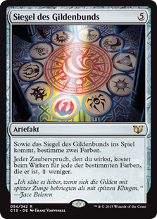 | Rules | As Seal of the Guildpact enters the battlefield, choose two colors. Each spell you cast costs less to cast for each of the chosen colors it is. |