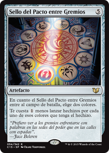 | Rules | As Seal of the Guildpact enters the battlefield, choose two colors. Each spell you cast costs less to cast for each of the chosen colors it is. |