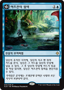 | Rules | At the beginning of your upkeep, look at the top card of your library. You may put it into your graveyard. Then if you have seven or more cards in your graveyard, you may transform Search for Azcanta. // (Transforms from Search for Azcanta.) : Add . , : Look at the top four cards of your library. You may reveal a noncreature, nonland card from among them and put it into your hand. Put the rest on the bottom of your library in any order. |