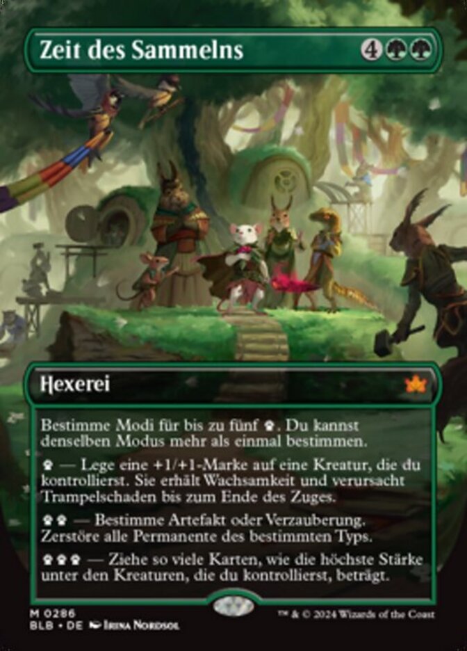 | Rules | Choose up to five worth of modes. You may choose the same mode more than once. — Put a +1/+1 counter on a creature you control. It gains vigilance and trample until end of turn. — Choose artifact or enchantment. Destroy all permanents of the chosen type. — Draw cards equal to the greatest power among creatures you control. |