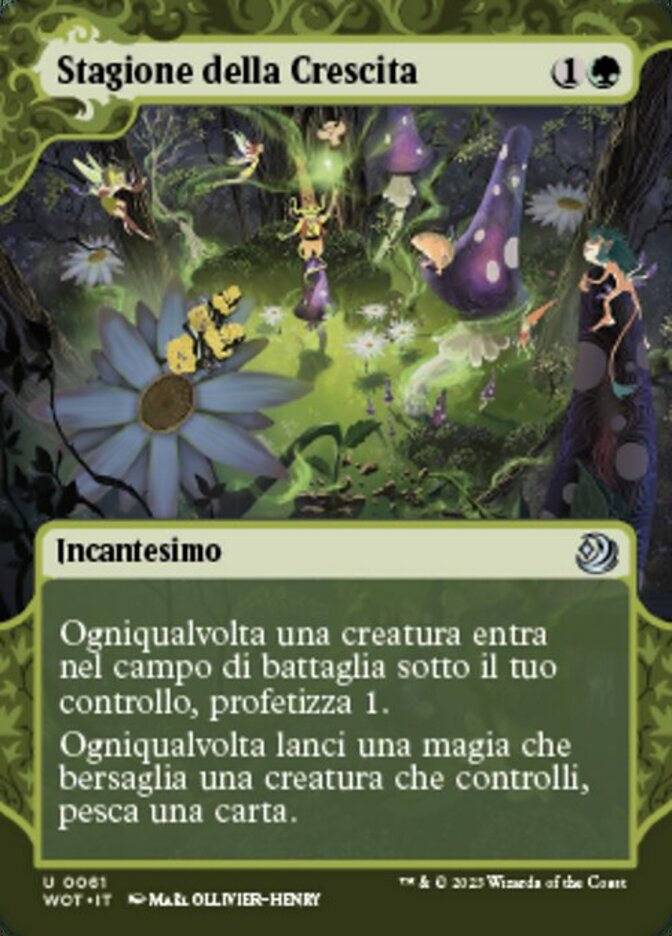 | Rules | Whenever a creature enters the battlefield under your control, scry 1. (Look at the top card of your library. You may put that card on the bottom of your library.) Whenever you cast a spell that targets a creature you control, draw a card. |