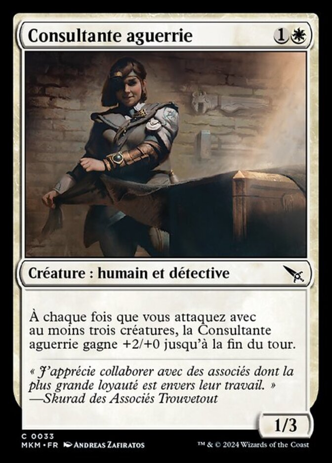| Rules | Whenever you attack with three or more creatures, Seasoned Consultant gets +2/+0 until end of turn. |