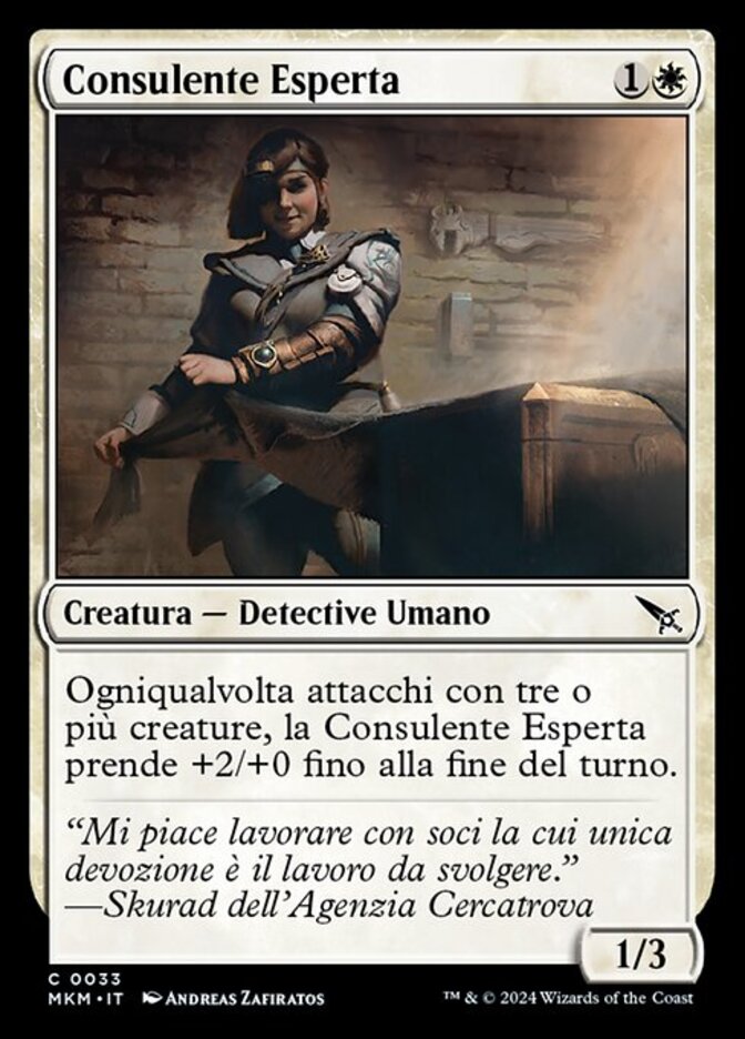 | Rules | Whenever you attack with three or more creatures, Seasoned Consultant gets +2/+0 until end of turn. |