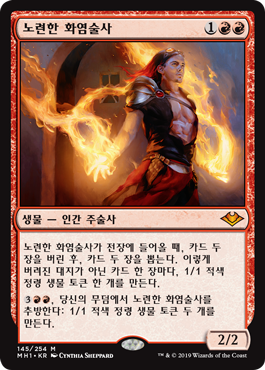| Rules | When Seasoned Pyromancer enters the battlefield, discard two cards, then draw two cards. For each nonland card discarded this way, create a 1/1 red Elemental creature token. , Exile Seasoned Pyromancer from your graveyard: Create two 1/1 red Elemental creature tokens. |