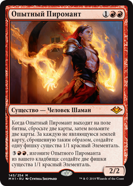 Rules When Seasoned Pyromancer enters the battlefield, discard two cards, then draw two cards. For each nonland card discarded this way, create a 1/1 red Elemental creature token.