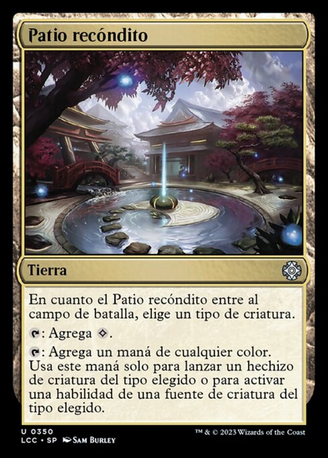 | Rules | As Secluded Courtyard enters the battlefield, choose a creature type. : Add . : Add one mana of any color. Spend this mana only to cast a creature spell of the chosen type or activate an ability of a creature or creature card of the chosen type. |