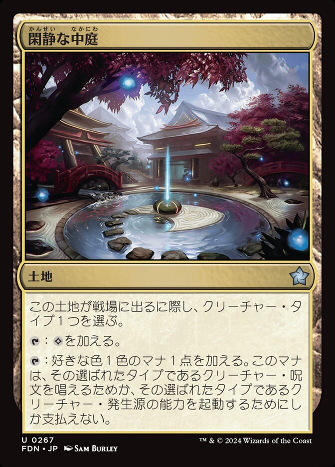 | Rules | As Secluded Courtyard enters the battlefield, choose a creature type. : Add . : Add one mana of any color. Spend this mana only to cast a creature spell of the chosen type or activate an ability of a creature or creature card of the chosen type. |