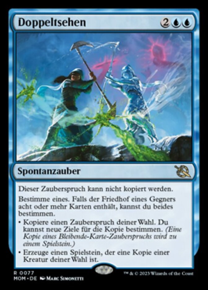 | Rules | This spell can't be copied. Choose one. If an opponent has eight or more cards in their graveyard, you may choose both. • Copy target spell. You may choose new targets for the copy. (A copy of a permanent spell becomes a token.) • Create a token that's a copy of target creature. |
