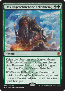 | Rules | Reveal the top eight cards of your library. You may put a creature card from among them onto the battlefield. Put the rest into your graveyard. Ferocious — If you control a creature with power 4 or greater, you may put two creature cards onto the battlefield instead of one. |