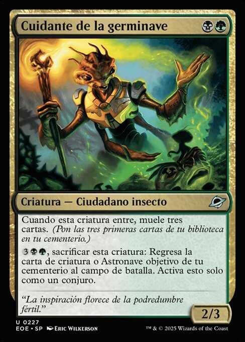 | Rules | When this creature enters, mill three cards. (Put the top three cards of your library into your graveyard.) , Sacrifice this creature: Return target creature or Spacecraft card from your graveyard to the battlefield. Activate only as a sorcery. |