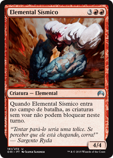| Rules | When Seismic Elemental enters the battlefield, creatures without flying can't block this turn. |