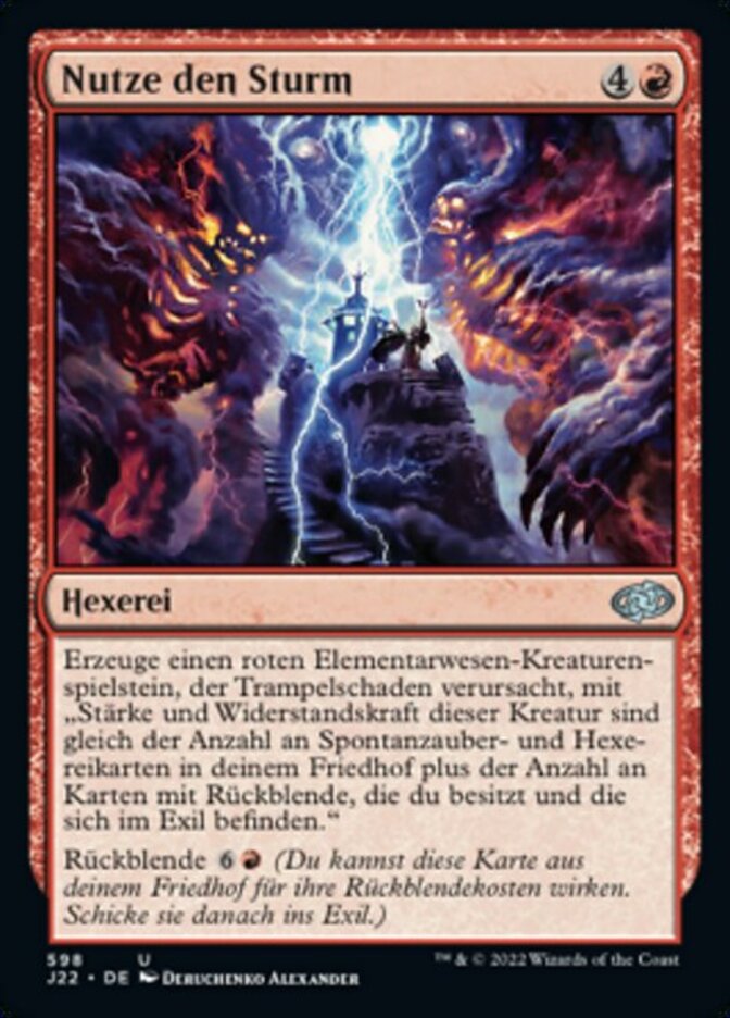 | Rules | Create a red Elemental creature token with trample and "This creature's power and toughness are each equal to the number of instant and sorcery cards in your graveyard plus the number of cards with flashback you own in exile." Flashback (You may cast this card from your graveyard for its flashback cost. Then exile it.) |