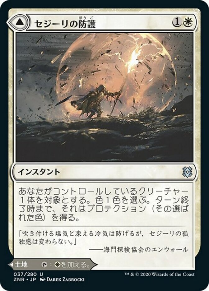 | Rules | Target creature you control gains protection from the color of your choice until end of turn. // Sejiri Glacier enters the battlefield tapped. : Add . |