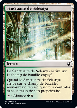 | Rules | Selesnya Sanctuary enters the battlefield tapped. When Selesnya Sanctuary enters the battlefield, return a land you control to its owner's hand. : Add . |