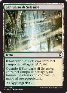 | Rules | Selesnya Sanctuary enters the battlefield tapped. When Selesnya Sanctuary enters the battlefield, return a land you control to its owner's hand. : Add . |