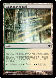 | Rules | Selesnya Sanctuary enters the battlefield tapped. When Selesnya Sanctuary enters the battlefield, return a land you control to its owner's hand. : Add . |