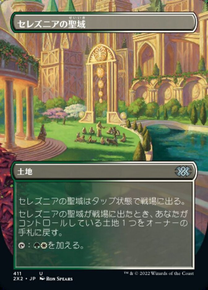 | Rules | Selesnya Sanctuary enters the battlefield tapped. When Selesnya Sanctuary enters the battlefield, return a land you control to its owner's hand. : Add . |