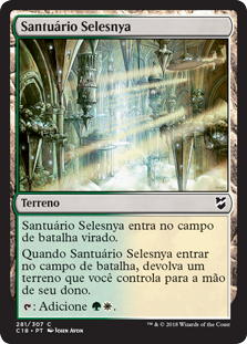 | Rules | Selesnya Sanctuary enters the battlefield tapped. When Selesnya Sanctuary enters the battlefield, return a land you control to its owner's hand. : Add . |