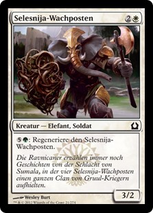 | Flavor | Ravnicans still tell tales about the Battle of Sumala where four Selesnya sentries held off an entire clan of Gruul warriors. |