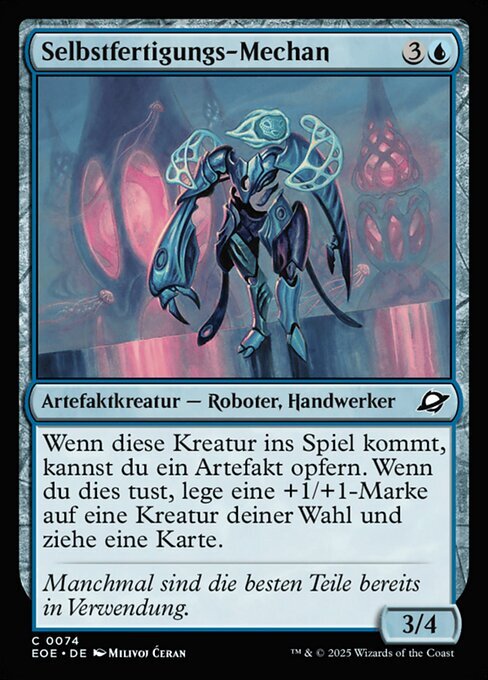 | Rules | When this creature enters, you may sacrifice an artifact. When you do, put a +1/+1 counter on target creature and draw a card. |