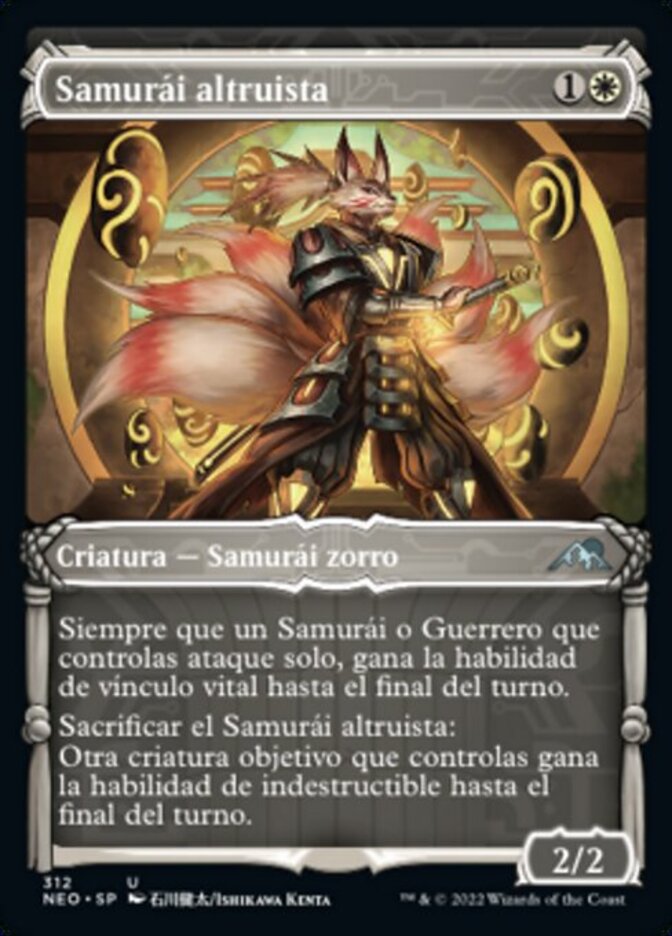 | Rules | Whenever a Samurai or Warrior you control attacks alone, it gains lifelink until end of turn. Sacrifice Selfless Samurai: Another target creature you control gains indestructible until end of turn. (Damage and effects that say "destroy" don't destroy it.) |