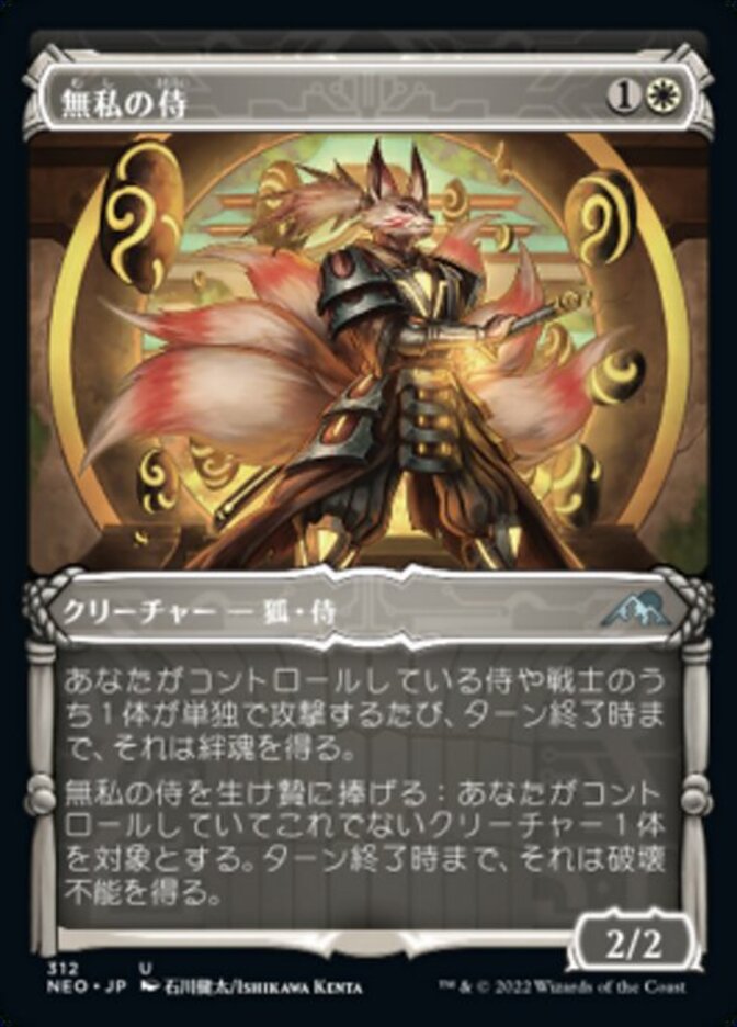 | Rules | Whenever a Samurai or Warrior you control attacks alone, it gains lifelink until end of turn. Sacrifice Selfless Samurai: Another target creature you control gains indestructible until end of turn. (Damage and effects that say "destroy" don't destroy it.) |
