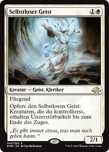| Rules | Flying Sacrifice Selfless Spirit: Creatures you control gain indestructible until end of turn. |