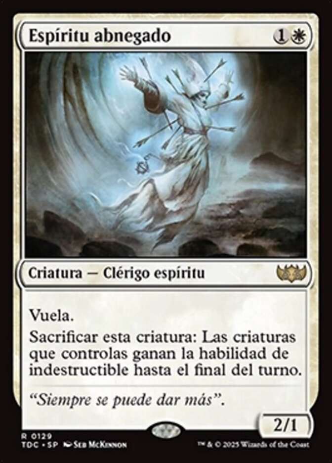 | Rules | Flying Sacrifice Selfless Spirit: Creatures you control gain indestructible until end of turn. |