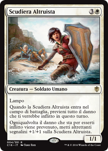 | Rules | Flash When Selfless Squire enters the battlefield, prevent all damage that would be dealt to you this turn. Whenever damage that would be dealt to you is prevented, put that many +1/+1 counters on Selfless Squire. |