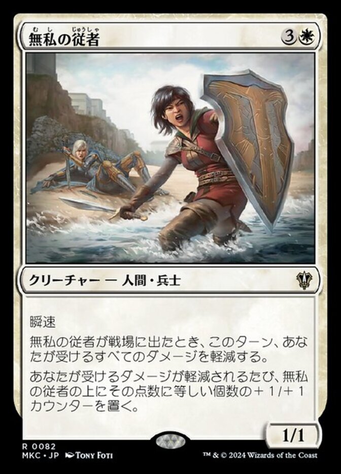 | Rules | Flash When Selfless Squire enters the battlefield, prevent all damage that would be dealt to you this turn. Whenever damage that would be dealt to you is prevented, put that many +1/+1 counters on Selfless Squire. |